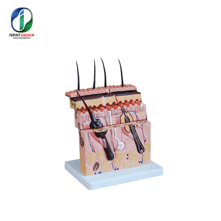This compact and colorful educational model represents the different layers and structures of human skin. Designed for classroom and training use, it is perfect for visually demonstrating the epidermis, dermis, and subcutaneous tissues in a simplified and accessible format.